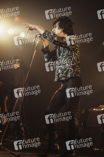 Lux Interior von The Cramps live in der Brixton Academy. London, 10.04.1984