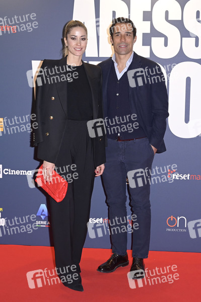Elena Santarelli mit Ehemann Bernardo Corradi bei der Premiere des Dokumentarfilms 'Adesso vinco io - Marcello Lippi' im Space Cinema Moderno. Rom, 26.02.2024