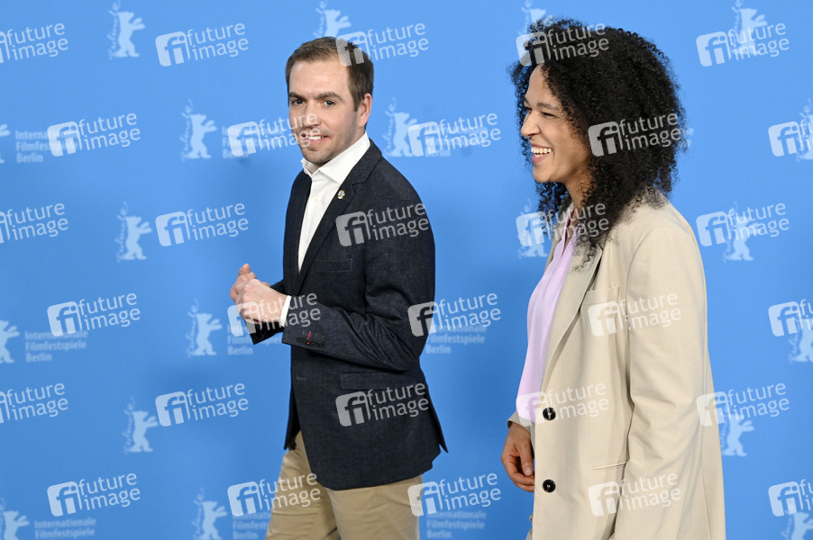 Philipp Lahm und Celia Sasic beim Photocall zum Kompilationsfim 'Elf mal morgen: Berlinale Meets Fußball / Eleven Tomorrows: Berlinale Meets Football' auf der Berlinale 2024 / 74. Internationale Filmfestspiele Berlin im Hotel Grand Hyatt. Berlin, 21.02.2024