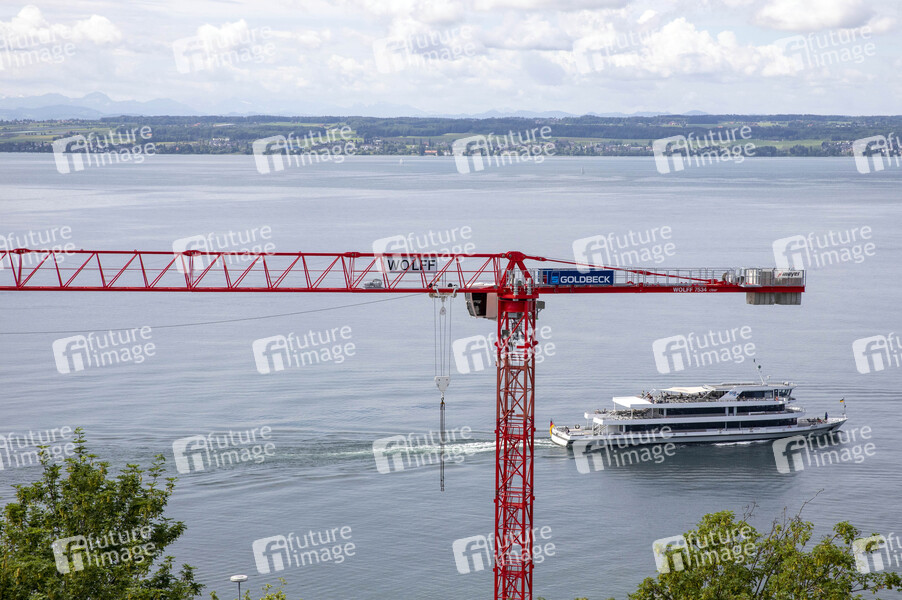 Turmdrehkran am Bodensee für neues städtisches Parkhaus am Fährhafen. Meersburg, 27.05.2020