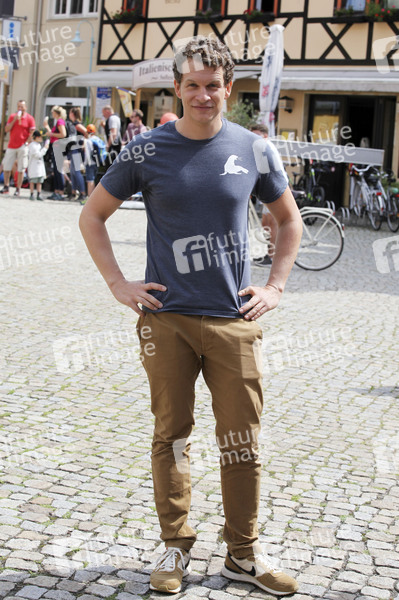 Sebastian Kaufmane am Set des ARD-Fernsehfilms 'Der Ranger - Paradies Heimat' auf dem Marktplatz. Stadt Wehlen, 14.08.2019