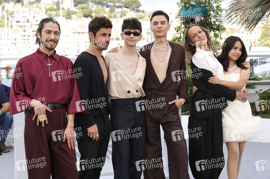 Francisco Diaz, Pedro Munoz, Diego Cespedes, Matias Catalan, Paula Dinamarca and Tamara Cortes beim Photocall zum Kinofilm 'The Mysterious Gaze of the Flamingo / La Misteriosa Mirada del Flamenco' auf dem Festival de Cannes 2025 / 78. Internationale Filmfestspiele von Cannes am Palais des Festivals. Cannes, 16.05.2025