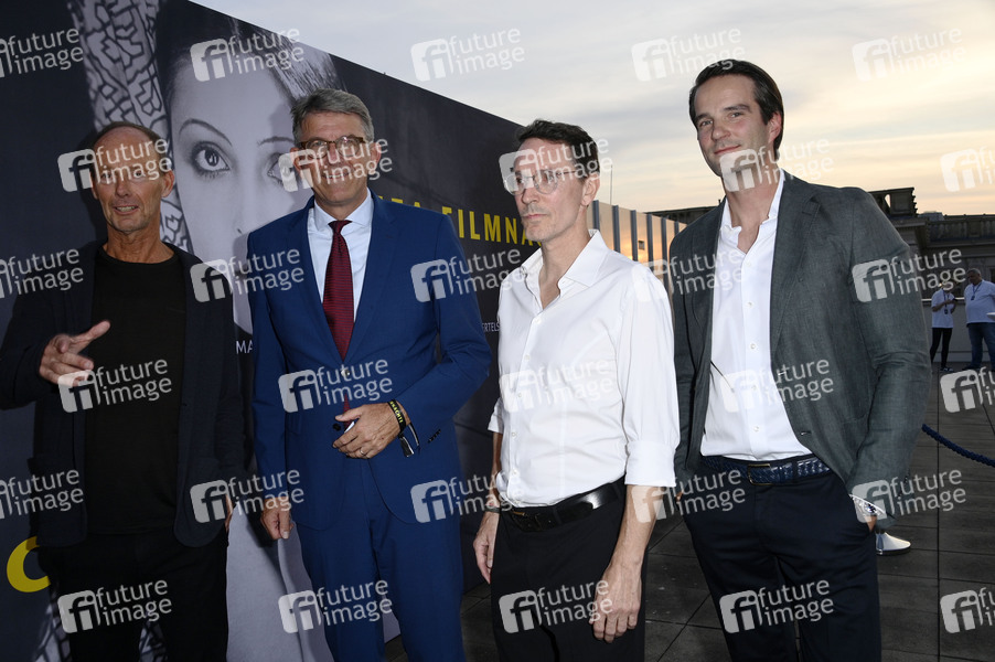 Thomas Rabe, Wolfram Weimer, Sascha Schwingel und Thomas Coesfeld beim Eröffnungsempfang der UFA Filmnächte 2025 auf der Dachterrasse der Bertelsmann Repräsentanz. Berlin, 27.08.2025