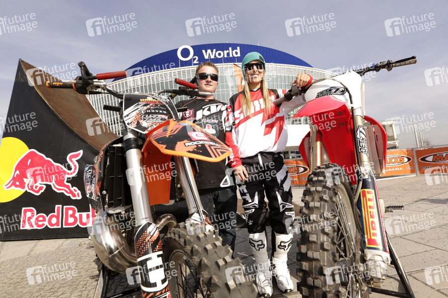 Hannes Ackermann und Emma McFerran beim Fototermin 'Night of the Jumps' vor der O2 World. Berlin, 06.03.2013