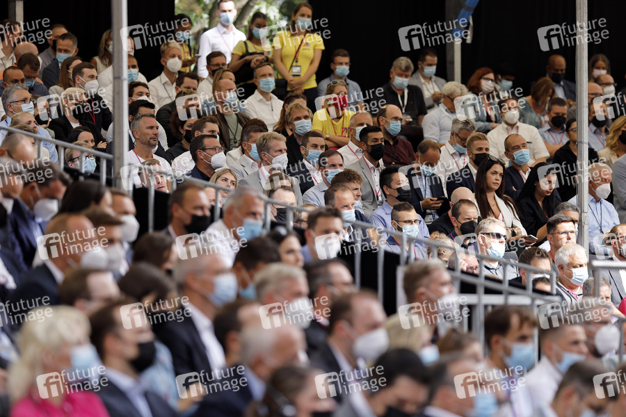 Messebesucher mit Masken bei Europas führender Digitalisierungsinitiative auf Entscheider-Level DIGITAL X in der Koelnmesse. Köln, 07.09.2021