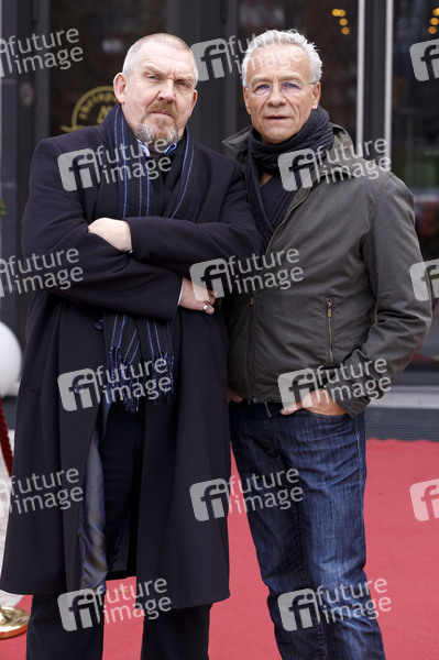 Dietmar Bär und Klaus J. Behrendt beim Fototermin am Set des 80. Tatorts aus Köln 'Tatort - Der Tod der Anderen' am Hotel Rheinpalais. Köln, 27.11.2019