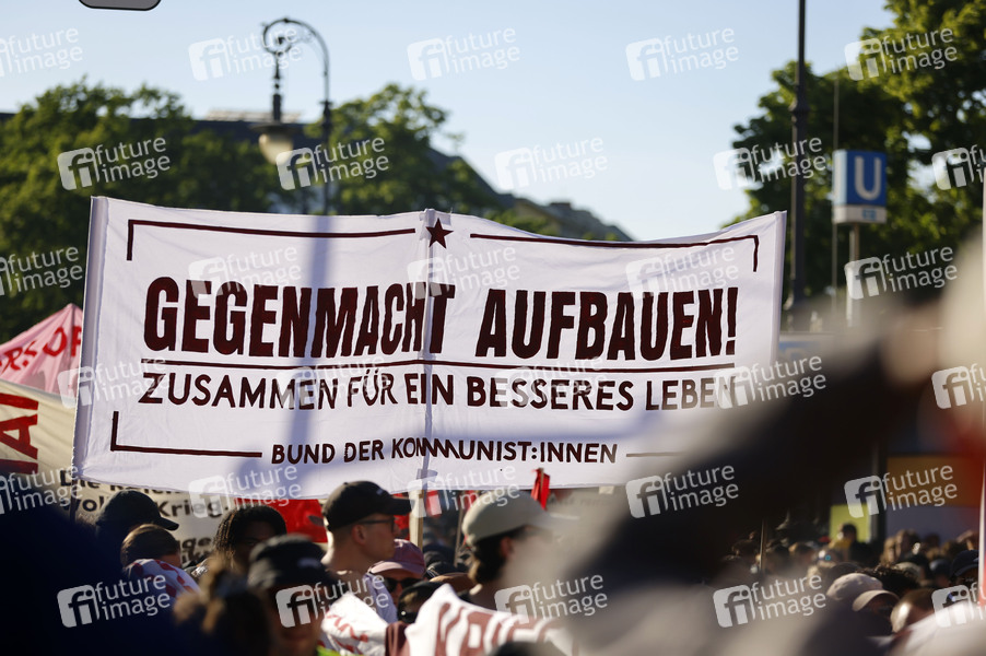 Demonstranten bei der Revolutionären 1. Mai-Demo von Neukölln nach Kreuzberg. Berlin, 01.05.2025
