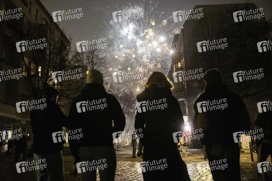 Hobrechtstraße / Pflügerstraße - Im Berliner Stadtteil Neukölln hat ein Gruppe Jugendlicher trotz der Corona-Kontaktbeschränkungungen und eingerichteter Böllerverbotszonen ein Feuerwerk veranstaltet. Der Verkauf von Silvesterfeuerwerk war in diesem Jahr verboten, jedoch war das Abbrennen unter bestimmten Voraussetzungen möglich. Die Berliner Polizei war im Einsatz und versuchte das Böllerverbot und das Versammlungsverbot, sowie die Corona-Kontaktbeschränkungen durchzusetzen. Es gab mehrere Festnahmen. Berlin, 01.01.2021