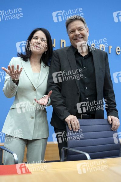 Annalena Baerbock und Robert Habeck bei der Bundespressekonferenz Bündnis 90/Die Grünen - Zu den Bundestagswahlen im Haus der Bundespressekonferenz. Berlin, 24.02.2025
