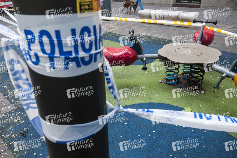 Abgesperrter Spielplatz - Tag 35 seit Verhängung des Ausnahmezustands durch die spanische Regierung wegen der Coronakrise. Madrid, 18.04.2020