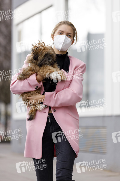 Victoria Swarovski mit ihrem Hund Winnie vor der Abfahrt zu Dreharbeiten zur 13. Staffel der RTL-Tanzshow 'Let's Dance' im MMC Coloneum. Köln, 12.03.2020