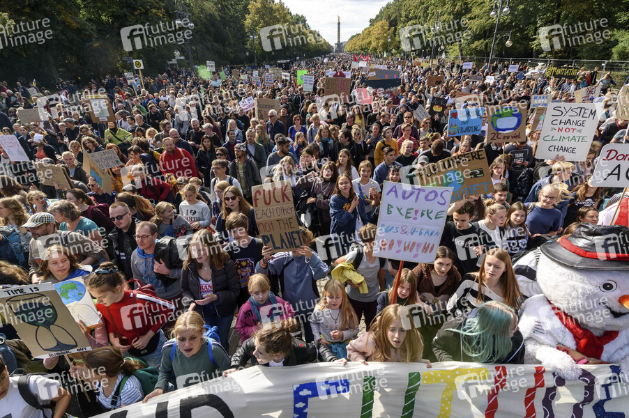 Demonstranten bei der 'Fridays for Future' Demonstration im Rahmen des weltweiten Klimastreiks am Brandenburger Tor. Berlin, 20.09.2019