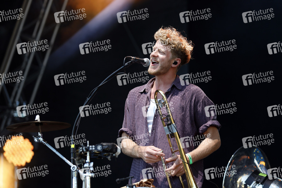 Max von Einem von der Band Bukahara live im Kulturgarten in der Bonner Rheinaue. Das Bonn Live Kulturgarten Open Air Festival 2020 ist Europas erstes Open Air Musik Festival unter Corona-Auflagen wegen der Covid-19 Pandemie. Bonn, 21.07.2020