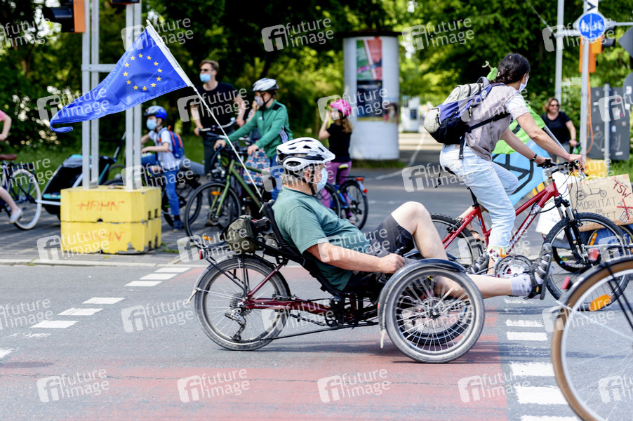 Aktion zum Bürgerbegehren 'Radentscheid Nürnberg 2020: für ein sicheres Miteinander' auf dem Volksfestplatz. Nürnberg, 21.05.2020