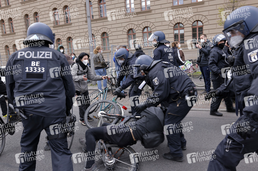 Protest, Demo, Demonstration, Corona-Maßnahmen-Kritiker, Corona-Hygieneregeln, Distanz, Mund-Nasen-Schutz, Protestierende, Demonstranten, Polizei, Polizisten, Gegner der Corona-Maßnahmen, Infektionsschutzgesetz, Corona-Notbremse, Eindämmung der dritten Pandemiewelle, Coronaleugner, Teilnehmer, Corona-Regeln, Pandemie, Corona-Demo, Coronademo, Querdenker, Querdenken, Gegendemonstranten, Corona-Leugner, Demo gegen Lockdown