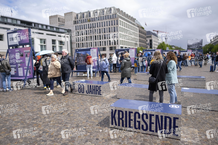 Besucher auf der Open-Air-Ausstellung zum 80. Jahrestag des Sieges über den Nationalsozialismus am Brandenburger Tor. Berlin, 04.05.2025
