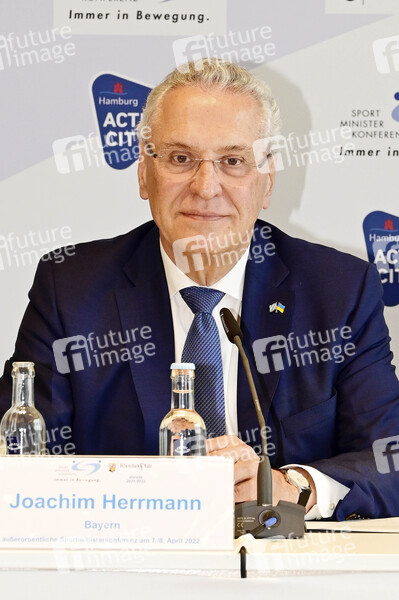 Joachim Herrmann bei der außerordentlichen Sportministerkonferenz im Hotel Le Meridien. Hamburg, 07.04.2022