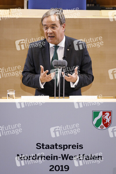 Armin Laschet bei der Verleihung des Staatspreises des Landes Nordrhein-Westfalen 2019 an Klaus Töpfer im WCCB. Bonn, 16.09.2019