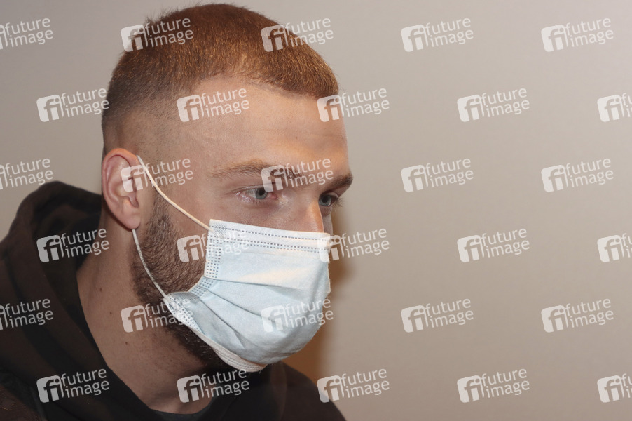 Filip Pavlovic, der Dschungelkönig 2022 der RTL Reality-Show 'Ich bin ein Star - Holt mich hier raus!', bei seiner Ankunft amFlughafen Hamburg.Hamburg, 10.02.2022