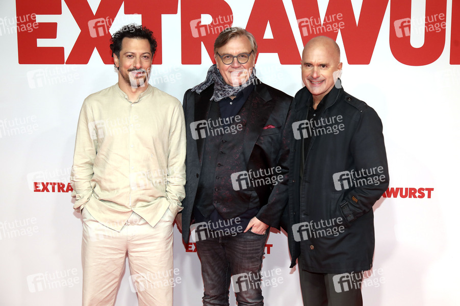 Fahri Yardim, Hape Kerkeling und Christoph Maria Herbst bei der Weltpremiere des Kinofilms 'Extrawurst' in der Lichtburg. Essen, 07.01.2026
