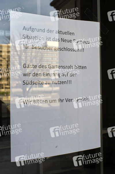 Schließung des Neuen Rathauses und anderer Ämter für Besucher wegen des Coronavirus. Hannover, 15.03.2020