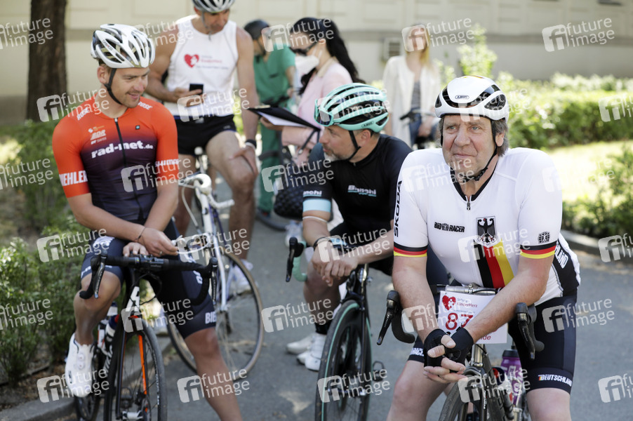 Theo Reinhardt, Sven Walser und Uwe Rohde beim Start zur 6. Etappe der HerzRadtour zugunsten der Stiftung KinderHerz vor dem Deutschen Herzzentrum Berlin. Berlin, 07.06.2021