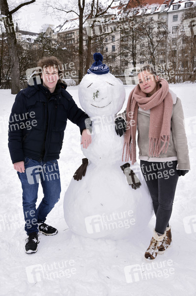 Prominenz, Celebrity, Celebrities, exklusives Fotoshooting, Photoshooting, Fototermin, Schnee, Winter, Unterhaltung, Entertainment, Schneemann, Regisseur, Kabarettist, Schauspielerin