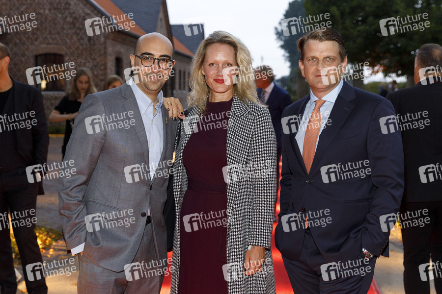 Nathaniel Brendel, Anna Schudt und Leopold Hoesch beim Kölner Emmy Cocktail 2021 anlässlich der 15. Kölner Jurysitzung des International Emmy auf Schloss Arff. Köln, 01.09.2021