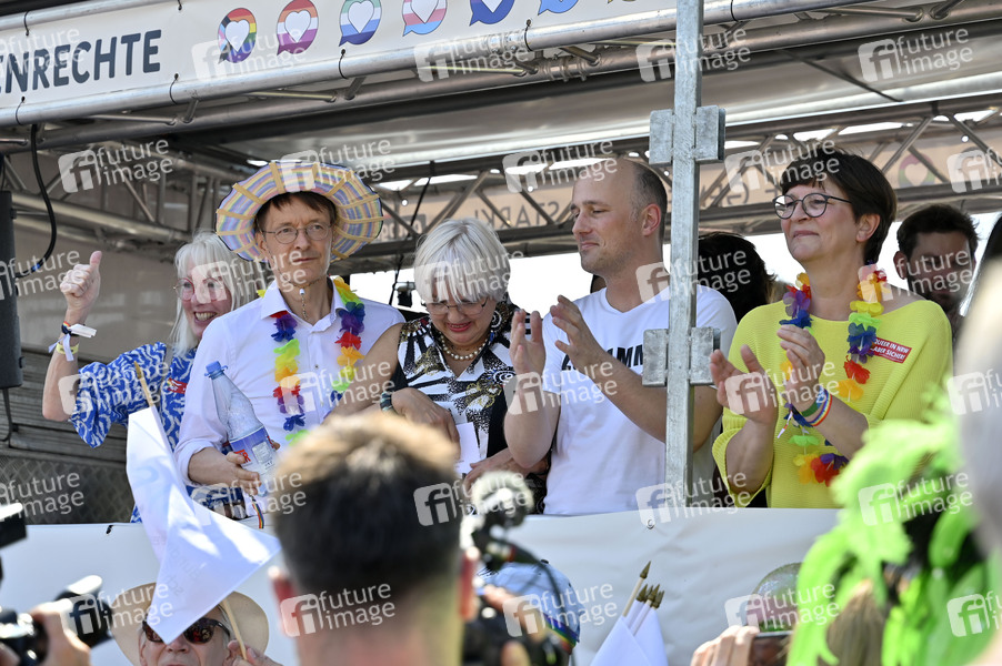 Elfi Scho-Antwerpes, Karl Lauterbach, Claudia Roth, Sven Lehmann, und Saskia Esken bei der Christopher Street Day Parade 2023 unter dem Motto 'Für Menschenrechte. Viele. Gemeinsam. Stark!' Köln, 09.07.2023