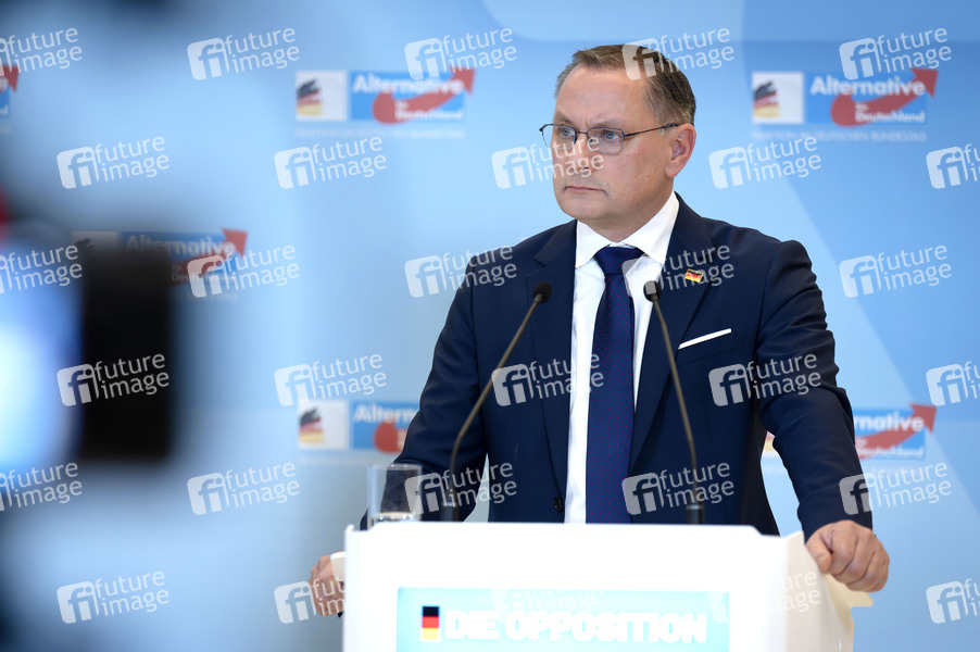 Politik, Statement, Pressekonferenz, PK, Reichstag, Deutscher Bundestag, Demokratie, Parlament, Parlamentsgebäude, Volksvertreter, MdB, Mitglied des Bundestages, Abgeordneter, Politiker, Bundessprecher der AfD, Vorsitzender der AfD-Bundestagsfraktion