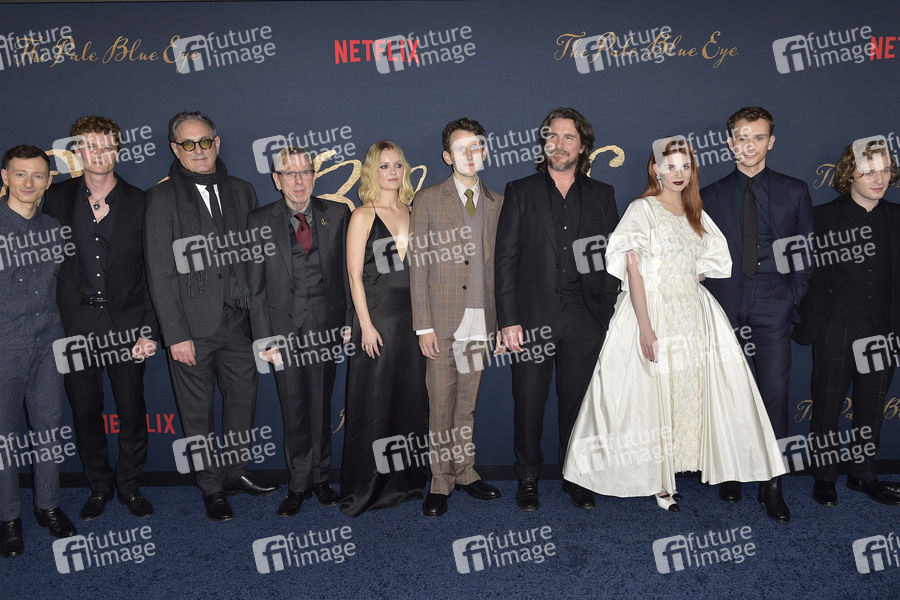 Steven Maier, Brennan Keel Cook, John Lesher, Timothy Spall, Hadley Robinson, Harry Melling, Christian Bale, Lucy Boynton, Harry Lawtey und Fred Hechinger bei der Premiere des Kinofilms 'The Pale Blue Eye / Der denkwürdige Fall des Mr Poe' im DGA Theater Complex. Los Angeles, 14.12.2022