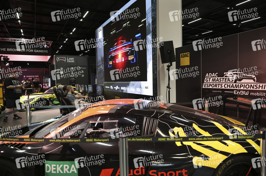 ADAC auf der Gamescom 2022 auf dem Gelände der Kölnmesse. Die Gamescom ist die weltweit größte Messe für Computer- und Videospiele, gemessen nach Ausstellungsfläche und Besucheranzahl. Zahlreiche Hersteller aus aller Welt präsentieren hier ihre neue Soft- und Hardware. Köln, 24.08.2022