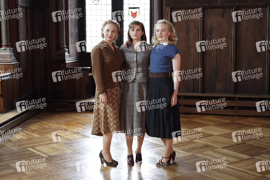 Anna Maria Mühe, Vanessa Loibl und Elisa Schlott beim Fototermin am Set des ARD-Films 'Unsere wunderbaren Jahre' im Schloss Burg Solingen. Solingen, 03.07.2019