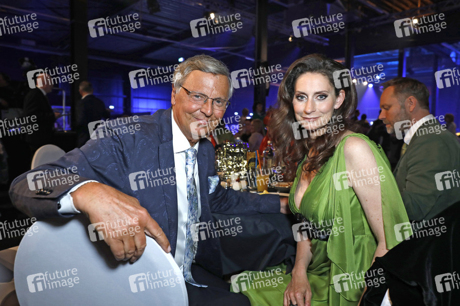 Wolfgang Bosbach und Pia Douwes bei der Verleihung der Goldenen Sonne 2019 während der Sonnenklar.TV Gala im Wunderland Kalkar. Kalkar, 27.04.2019
