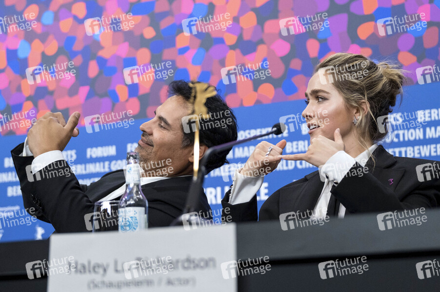 Michael Pena und Haley Lu Richardson bei der Pressekonferenz zum Kinofilm 'Good Luck, Have Fun, Don't Die' auf der Berlinale 2026 / 76. Internationale Filmfestspiele Berlin auf dem Red Carpet vom Berlinale Palast. Berlin, 13.02.2026