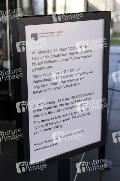 Die Maßnahmen des Senats im Kampf gegen das Coronavirus werden ausgedehnt. Seit Freitag sind die staatlichen Theater-, Opern- und Konzerthäuser komplett geschlossen, genauso wie die Museen, Gedenkstätten und Bibliotheken. Dem Beispiel der staatlichen Kultureinrichtungen folgen auch die meisten private Bühnen. Ab kommender Woche schließen auch Schulen und Kitas. Berlin, 14.03.2020