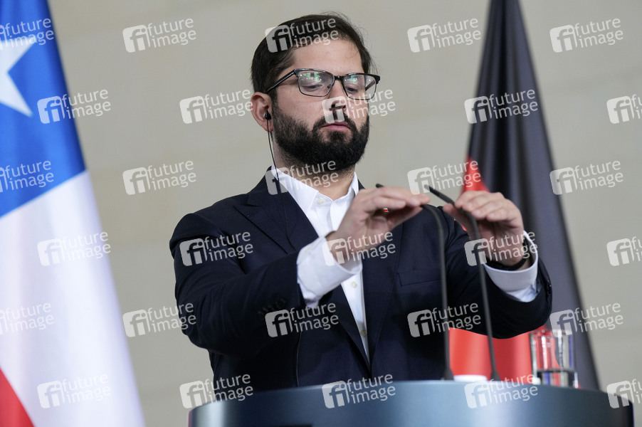 Gabriel Boric beim Empfang des Präsidenten von Chile mit militärischen Ehren und zu einem gemeinsamen Gespräch mit dem Bundeskanzler mit anschließendem Pressestatement im Bundeskanzleramt. Berlin, 10.06.2024