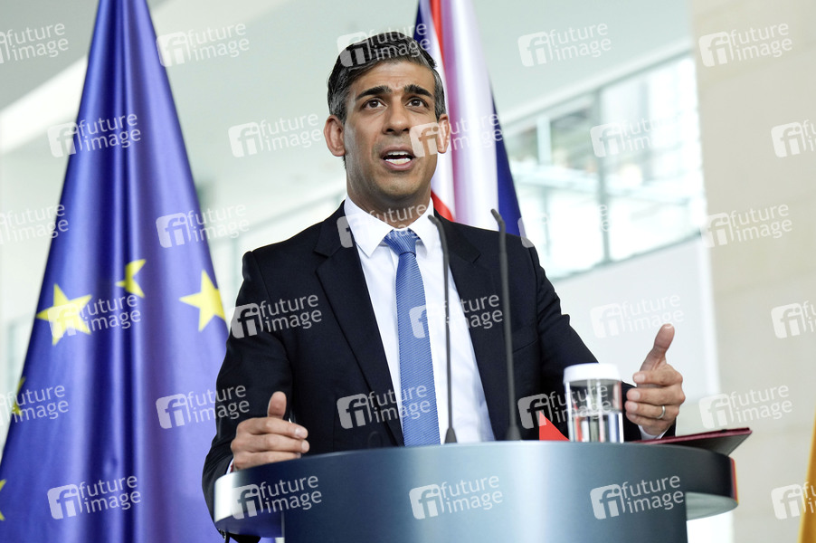 Rishi Sunak beim Empfang des Premierministers des Vereinigten Königreichs von Großbritannien und Nordirland mit militärischen Ehren und zu einem gemeinsamen Gespräch mit dem Bundeskanzler mit anschließendem Pressestatement im Bundeskanzleramt. Berlin, 24.04.2024