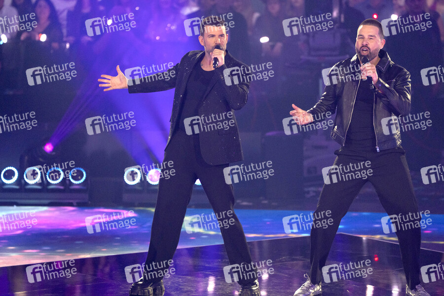 Jay Khan und Eloy de Jong von Boyband Mania in der TV-Show 'Silvester-Schlagerbooom 2026 live - Die Wunderlichtershow!' im BMW Park. München, 31.12.2025