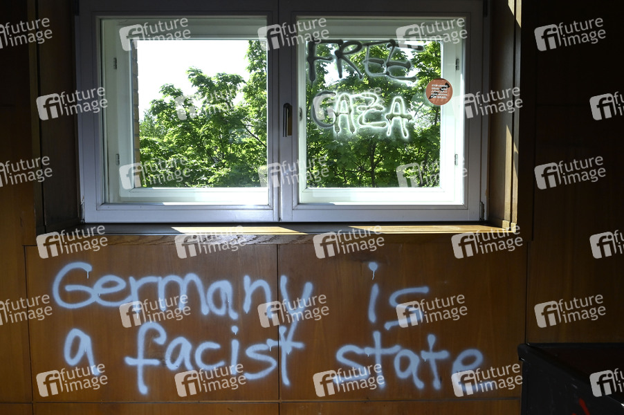 Nach einer Besetzung des Emil-Fischer-Saals der Humboldt-Universität durch propalästinensische Aktivisten die durch die Polizei geräumt wurde, sind offenbar so umfangreiche Schäden entstanden, dass der Raum nicht mehr nutzbar ist. Berlin, 22.04.2025