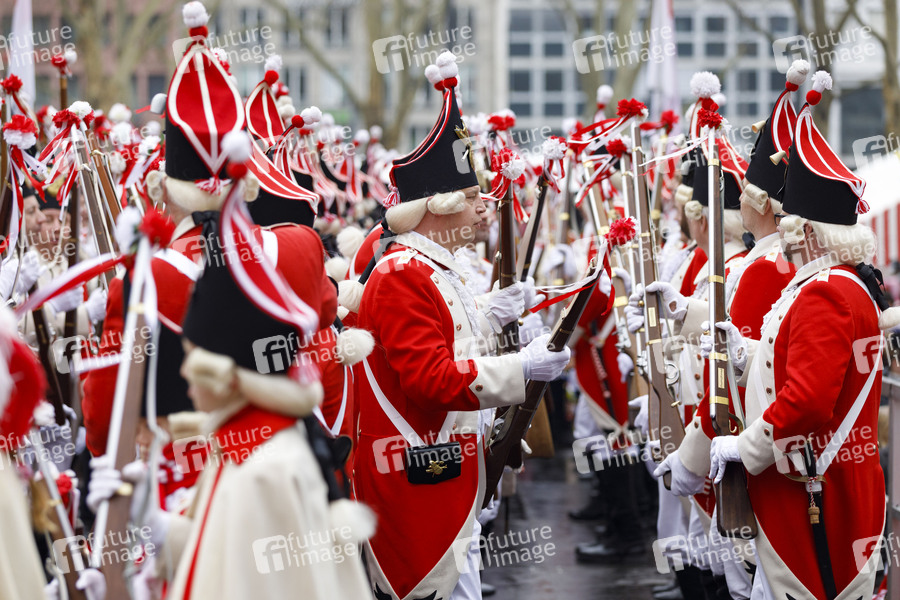 Kostüm, Karnevalsverein, Traditionscorps, Karneval, Köln, Karneval in Köln, Karnevalssamstag 2018, Karneval 2018, Kölner Karneval, Neumarkt, Funken-Biwak, Funkenbiwak, Rote Funken, Narren, Jecken, Kostüme, Alaaf, Kölle Alaaf, Kamelle, Tradition, Session, Sessionsmotto, Tanzpaar, Funkenmariechen, Tanzmariechen, Jecke, Jeck, Kölscher Karneval, Straßenkarneval, Fastelovend, Cologne Carnival, Spaßkultur, Brauchtum, Kölsche Funke rut-wieß vun 1823 e. V., Ehrengarde, Dienstgarde, Männerverein, Corps, Regiment, Uniform, Vereinsleben, Vereinskultur, Karnevalsvereine, Symbolbild, Symbolfoto