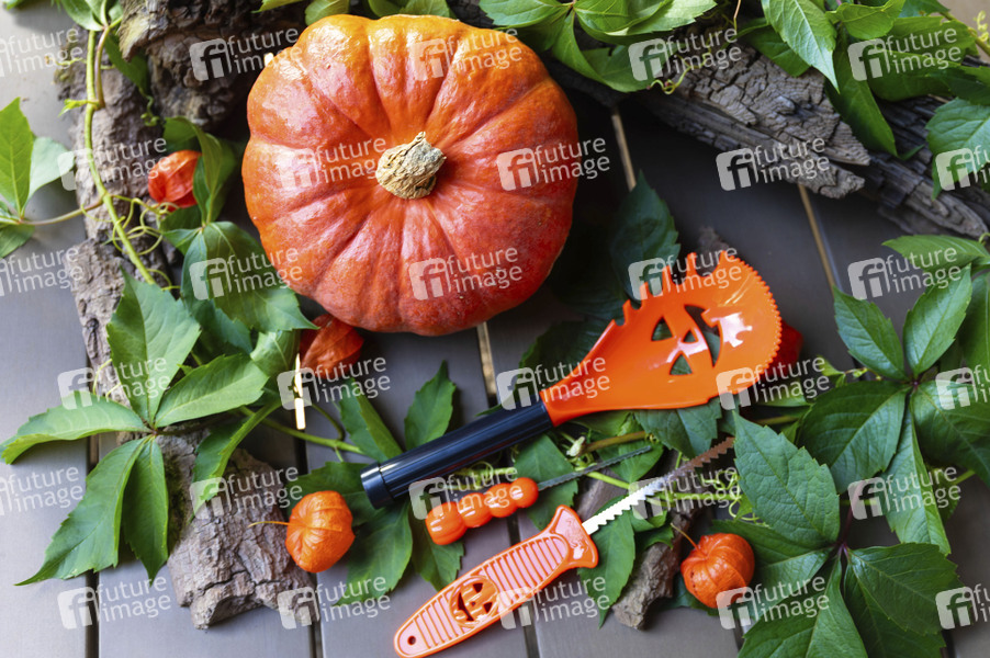 Kürbis schnitzen, Kürbisse, Cucurbita, Halloween, Herbst, Kürbisfruchtfleisch, Kürbiswände, Kürbis Gesicht, Kürbis-Schnitzset, Deko, Symbolbild, Themenbild