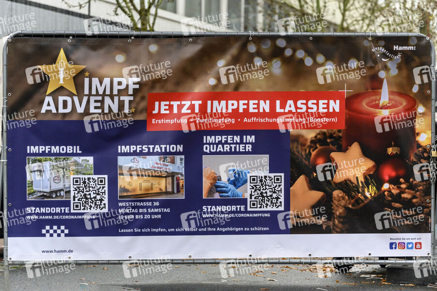 Auf dem Weihnachtsmarkt gilt die 2G Regel. Besucher haben die Gelegenheit sich impfen zu lassen. Auch Booster-Impfungen sind möglich, wenn die letzte Impfung mindestens 6 Monate zurück liegt. Hamm, 24.11.2021