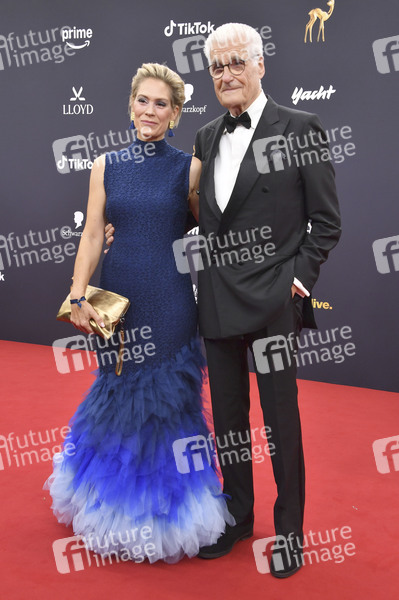 Sky du Mont mit Partnerin Julia Schütze bei der 77. Bambi-Verleihung 2025 in den Bavaria Filmstudios. München, 13.11.2025