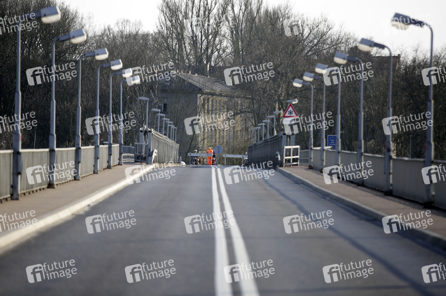 Der gesperrte Grenzübergang von Küstrin nach Kostrzyn. Die Grenzen zwischen Polen und Deutschland sind wegen des Coronavirus geschlossen. Küstrin, 16.03.2020