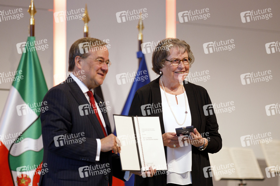 Armin Laschet und Ruth Kühn bei der Verleihung des Landesverdienstordens Nordrhein-Westfalen in der Kölner Flora. Köln, 23.08.2020