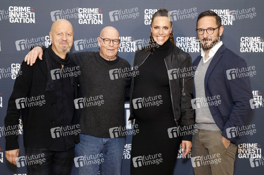 Andreas Weinek, Ron Jones, Esther Sedlaczek und Emanuel Rotstein bei der Präsentation des neuen Pay-TV-Senders Crime + Investigation im Studio G3. München, 09.05.2019