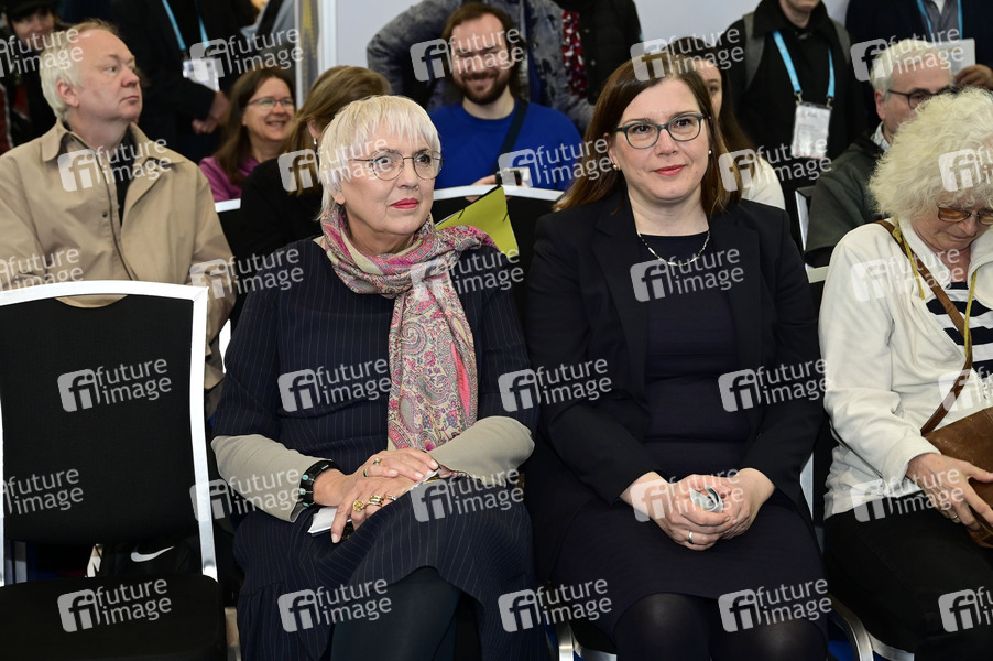 Claudia Roth und Skadi Jennicke bei der Eröffnung des Ukraine-Standes in Halle 4 auf der Leipziger Buchmesse 2025 auf dem Messegelände. Leipzig, 27.03.2025