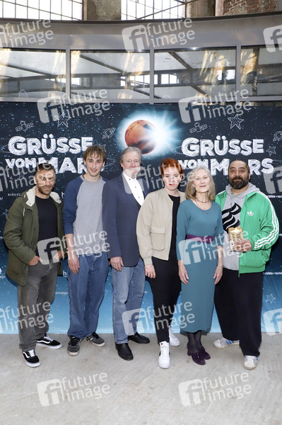 Cem-Ali Gültekin, Jona Volkmann, Michael Wittenborn, Sarah Winkenstette, Hedi Kriegeskotte und Kailas Mahadevan bei der Premiere des Kinofilms 'Grüße vom Mars' in den Zeise Kinos. Hamburg, 02.04.2025