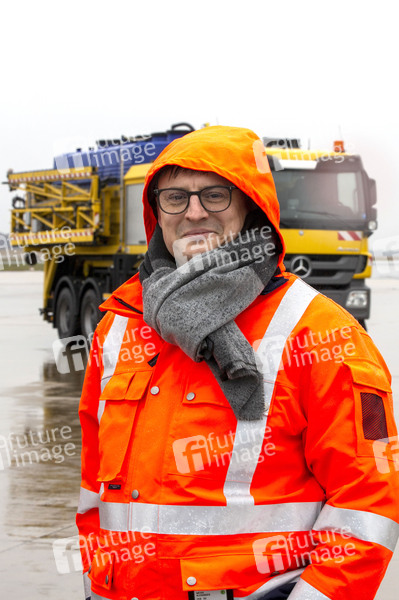 Alexander Weise beim Presse-Fototermin zum Winter-Fuhrpark des Flughafens Köln Bonn Airport. Köln, 11.12.2019